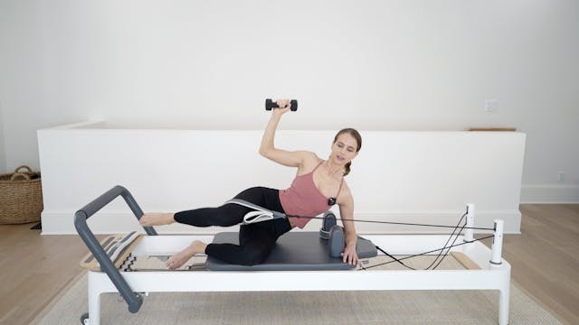 A fun, mostly lower body workout with some cardio moves sprinkled in to build up the heat. Reformer level 2